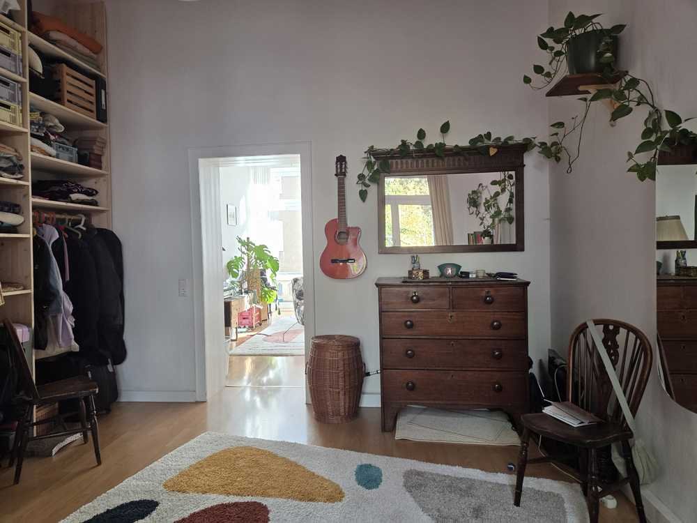 Im Schlafzimmer befindet sich ein Holzregal, das kürzlich selbst eingebaut wurde. Es reicht bis zur Decke und passt perfekt in die Nische. Das Regal umfasst mehrere Fächer sowie eine eingebaute Kleiderstange (siehe Bilder). Da es nicht in die neue Wohnung passt, würde ich mir wünschen, dass es für 330 Euro übernommen wird. Bitte teile mir mit, ob das für dich in Ordnung ist.