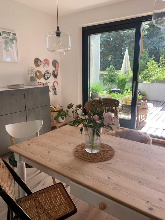Ein besonderes Highlight ist die großzügige Dachterrasse mit Blick ins Grüne, die einen wunderbaren Rückzugsort mitten in der Stadt bietet.