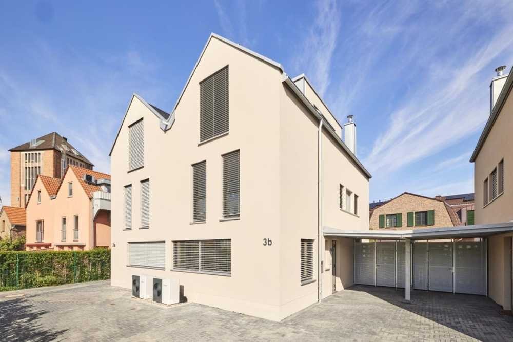 Umgeben von Ein- und Zweifamilienhäusern mit Blick zur Pfarrkirche entstehen im alten Ortskern von Rondorf an einer privaten Zufahrtsstraße zwei neue Doppelhäuser.