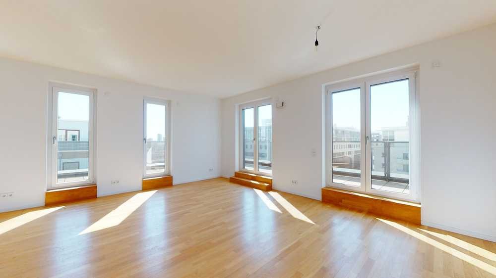 In der Wohnung erwartet Sie ein Flur mit Garderobe, ein Wohn- und Essbereich mit moderner Einbauküche, drei Schlafzimmer sowie ein Bad mit bodengleicher Dusche und Badewanne. Die große Dachterrasse kann vom Wohnbereich und einem der Schlafzimmer aus betreten werden. Ein zweites Duschbad rundet das Gesamtbild ab. Ein Abstellraum mit Waschmaschinenanschluss bietet zusätzlichen Stauraum.