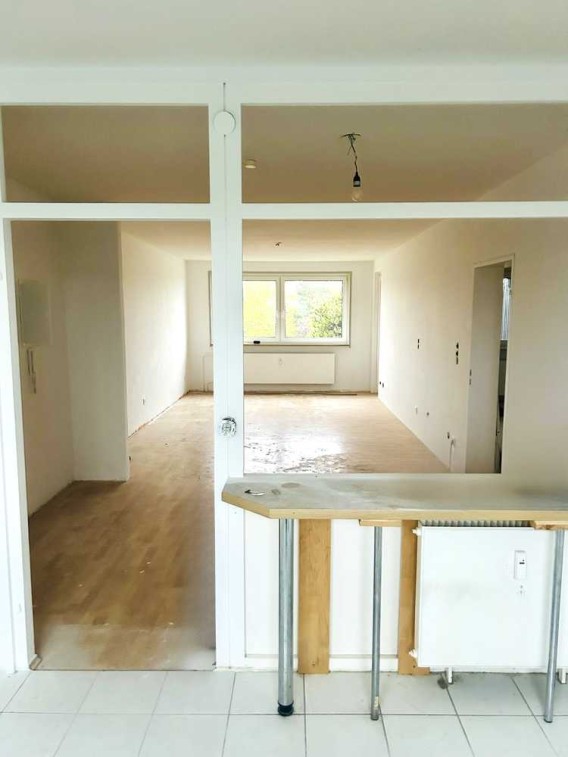 Die Bodenbeläge des Ess-/Wohnbereichs, sowie Flur, Schlaf- und Kinderzimmers werden noch erneuert (geplant ist ein zeitloser Holzton).
