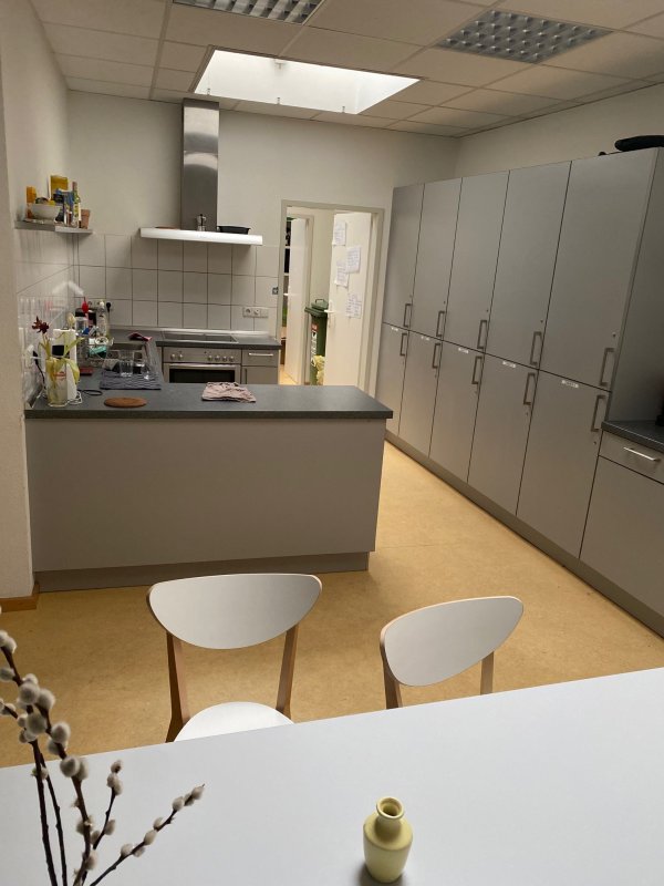 Vollausgestattete Küche mit eignem Kühlschrank und Vorratsschrank