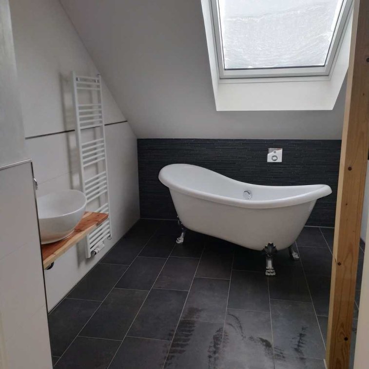 Bei dieser ansprechenden Immobilie handelt es sich um eine Wohnung, die durch eine gehobene Innenausstattung besticht und zum 01.02.2026 bezogen werden kann. Zu der Wohnung zählen zwei einladende Schlafzimmer und einen grosszügigen offenen Raum, der locker den Ess- und Wohnbereich aufnehmen kann und in der offenen Küche mündet. Ausserdem gibt es noch dieses Traumbadezimmer mit freistehender Badewanne direkt unter einem grossen Dachfenster und einer grosszügigen Dusche. In der Wohnung selbst beginnen die Dachschrägen ab einer Höhe von ca. 1,20 cm, sodass Kommoden und kleinere Schränke immer noch gut an diesen Seiten gestellt werden können. Die Dachterrasse geht nach Süden. Sie verfügt über eine hübsche Markise. Diese Terrasse können Sie an sonnigen Tagen zum zweiten Wohnzimmer machen. Zur Verfügung steht Ihnen außerdem ein Kellerraum.