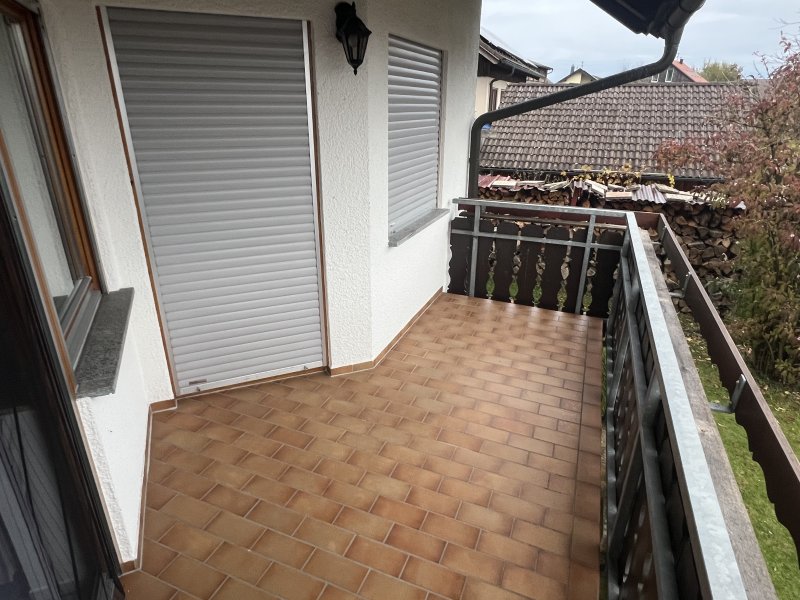 - überdachter Balkon mit Sicht auf den örtlichen Spielplatz