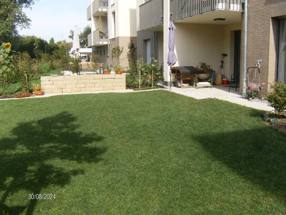Zur Wohnung gehört auch eine Terrasse und ein schön angelegter Ziergarten,