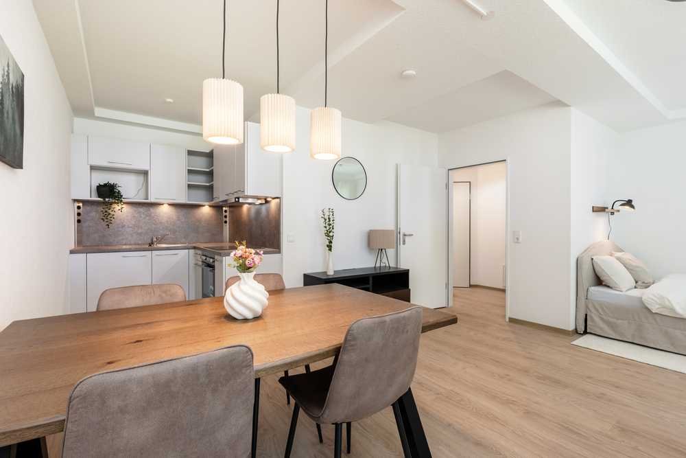 Jede Wohnung ist mit einer eigenen Küche ausgestattet, sodass Sie Ihren Alltag individuell und komfortabel gestalten können. Die großzügigen Fenster sorgen für viel Tageslicht und schaffen eine angenehme, helle Atmosphäre in den Räumen. Für entspannte Stunden im Freien stehen Ihnen entweder ein Balkon oder eine Terrasse zur Verfügung, auf denen Sie die frische Luft und die Natur genießen können.