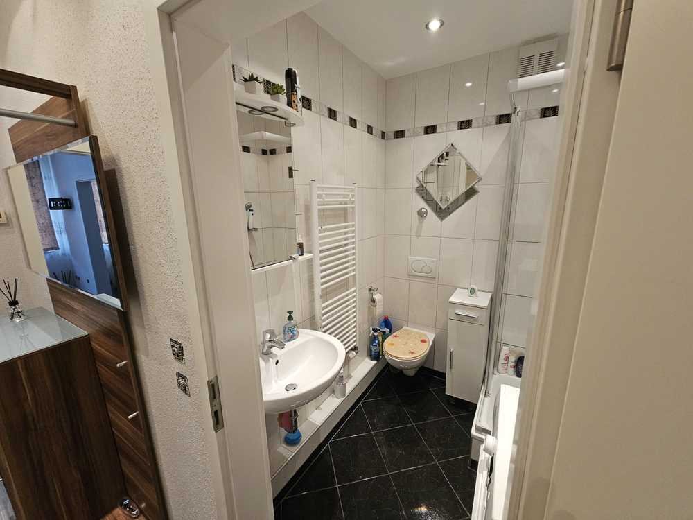 Das Badezimmer wurde modern und zeitgemäß gestaltet und bietet ein gepflegtes, angenehmes Ambiente.