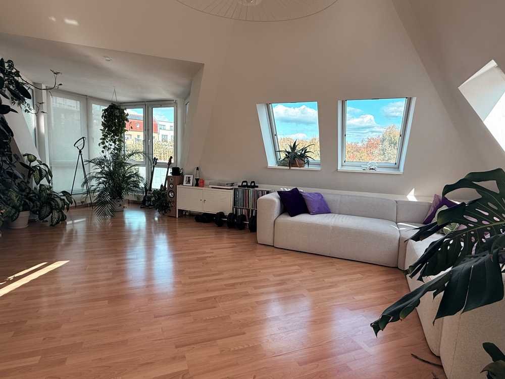 This bright, fully furnished 2 room penthouse apartment (approx. 95 m²) occupies the top floor of a well-maintained 1997 building with lift in a quiet street in Berlin-Weißensee.