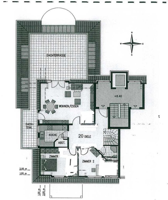 Diese helle, ansprechende und geräumige 4-Zimmer-Wohnung befindet sich im 4. Obergeschoss auf zwei Ebenen eines gepflegten Mehrfamilienhauses in attraktiver Lage in Ludwigsburg. Sie bietet mit ca. 139 m² Wohnfläche viel Platz zum Leben und Wohlfühlen. Die Maisonettewohnung verfügt über ein helles Wohnzimmer mit zwei Ausgängen zur umlaufenden Terrasse, zwei Kinderzimmer und eine gut ausgestattete Küche mit separatem Speiseraum. Ein besonderes Highlight ist die große Terrasse. Sie ist bis zur Wohlfühloase ausbaubar und lädt zum Entspannen ein. Eine große Diele mit genügend Platz für Garderoben(schränke) sowie ein kleines Bad mit WC runden den attraktiven Wohnungsschnitt im unteren Bereich des 4. OGs ab. Über eine Wendeltreppe geht es in den oberen Wohnungsbereich mit kleiner Galerie, dem größeren Bad und einem großen Dachzimmer für Schlafen, Spielen, Entspannen oder Arbeiten. Ein abgeschlossener Kellerraum im UG bietet genügend weiteren Stauraum. Zwei praktische Tiefgaragenplätze mit E-Anschluss sind vorhanden. Die Wohnung wird spätestens ab dem 12.12.2025 frei sein. Die Ablöse im Rahmen der Nachvermietung beträgt 3.000 EUR.