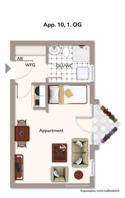 Das helle und freundliche Appartement teilt sich wie folgt auf: