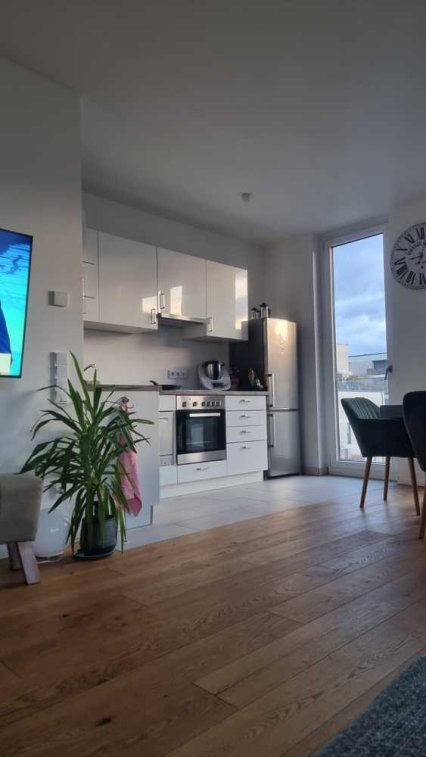 Ein Tiefgaragenstellplatz ist vorhanden, die Einbauküche sollte vom Vormieter übernommen werden.