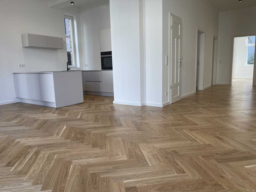 Insgesamt stehen Ihnen auf ca. 120 qm zwei Schlafzimmer, ein Ankleidezimmer, eine großzügige Wohnküche, ein modernes Badezimmer, ein Abstellraum sowie ein großer Garten (kein Gemeinschaftsgarten) auf einer Ebene zur Verfügung.