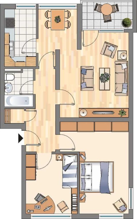 Die hübsche Wohnung befindet sich in einem gepflegten Mehrfamilienhaus, das von Grünflächen umrahmt wird. In der netten Nachbarschaft werden Sie sich sicher wohlfühlen