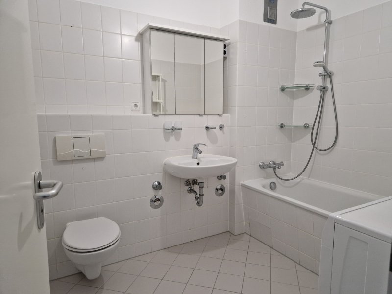 - gefliestes Wannenbad mit Waschmachine