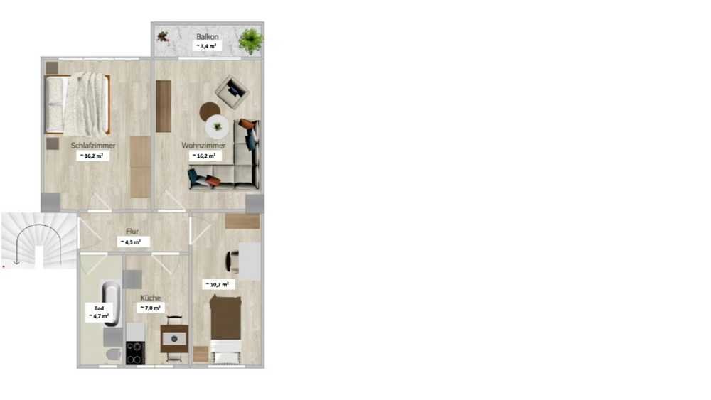 Die konkrete Raumaufteilung kann dem Grundriss entnommen werden. Alle Räume sind mit Heizung ausgestattet. Das Bad verfügt über ein Fenster und ist mit Badmobiliar (Badewanne, Waschbecken mit Beleuchtung und WC) ausgestattet.