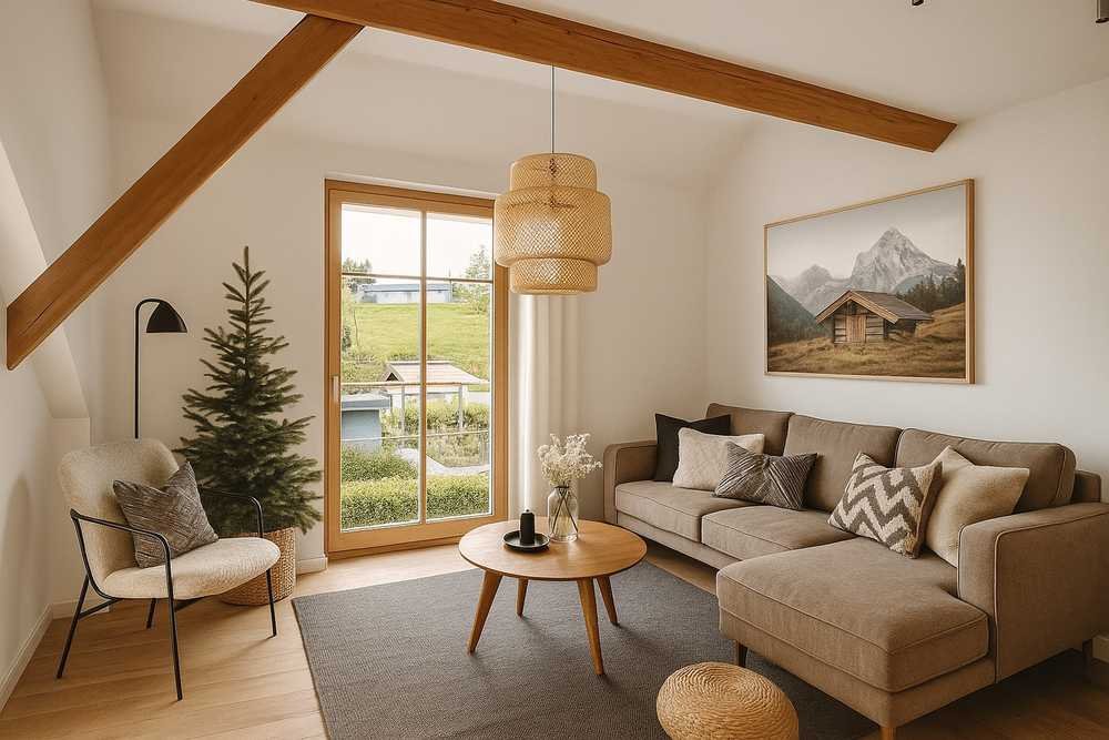 Diese lichtdurchflutete 3-Zimmer-Dachgeschosswohnung in Scheidegg präsentiert sich nach einer umfassenden Renovierung in modernem und gepflegtem Zustand. Besonders hervorzuheben ist die neu geschaffene Dachgaube im Wohnzimmer, die nicht nur für ein großzügigeres Raumgefühl sorgt, sondern auch viel Tageslicht in den Wohnbereich bringt.