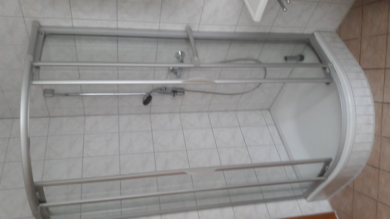 - Duschraum mit Dusche, Waschbecken und Bidet