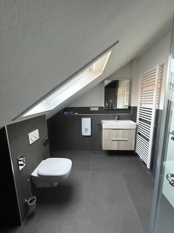 •Neues, stilvolles Badezimmer mit Anschluss für Waschmaschine und Trockner