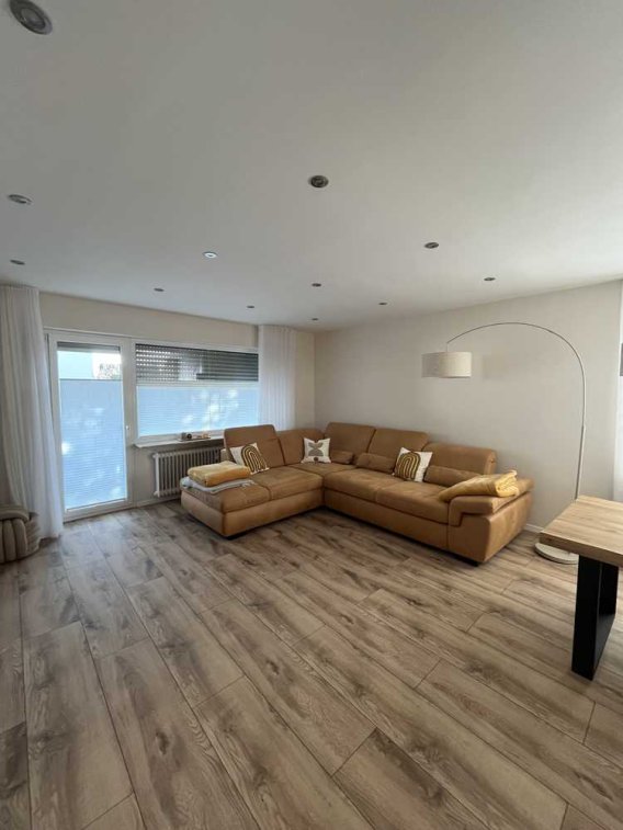 Vermietet wird eine 4-Zimmer-Wohnung mit insgesamt 105 Quadratmetern. Die Wohnung teilt sich auf in einen Flur, ein Gäste-WC, eine Küche (neu und hochwertig aus 2024) mit Speisekammer, ein geräumiges Wohnzimmer mit Essbereich und direktem Zugang zur großen Terrasse, ein Kinder-/Gästezimmer/Büro und ein großzügigen Hauptschlafzimmer, die beide Zugang zur Terrasse bieten. Außerdem ist das Bad frisch saniert und mit ebenerdiger Dusche ausgestattet. Das 4. Zimmer wird aktuell als Ankleide genutzt, die Schränke können übernommen werden.