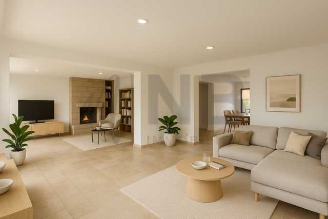 In dem großzügigen Wohnraum befindet sich ein Kamin, der für wohlige Wärme an kalten Wintertagen sorgt. Über einen kleinen Flur gelangen Sie zum Essbereich mit anliegender Küche. Über den Essbereich erreichen Sie auch die geräumige Terrasse, auf der Sie, bei schönen Wetter Ihre Mahlzeiten in der Sonne genießen können. Der Schlafbereich ist separiert. Hier befindet sich neben zwei Schlafräumen auch das Hauptbad, das mit einer bodengleichen Dusche und einem Bidet ausgestattet ist. Das Schlafzimmer bietet Ihnen ebenfalls einen Zugang zu der Terrasse.