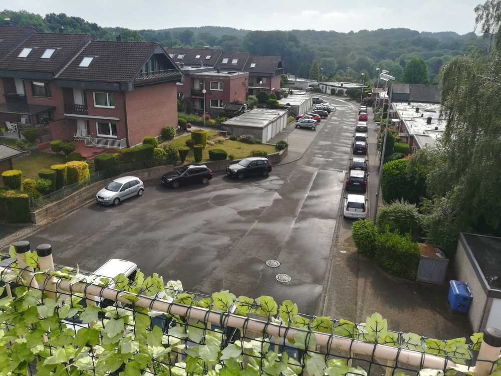 Ausblick über Leverkusen Schlebusch, die Kölner Skyline sowie