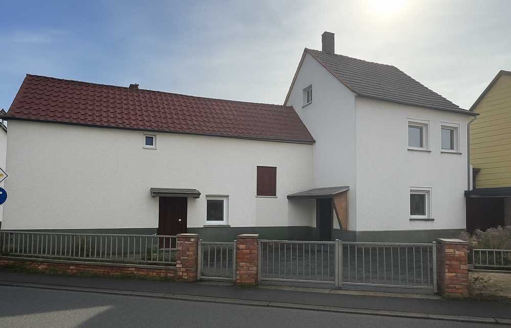 Wir vermieten hier ein gemütliches Haus (auf dem Foto das rechte Haus), das gerade erst fertig saniert wurde. Es hat 4 Zimmer, Küche und Bad.