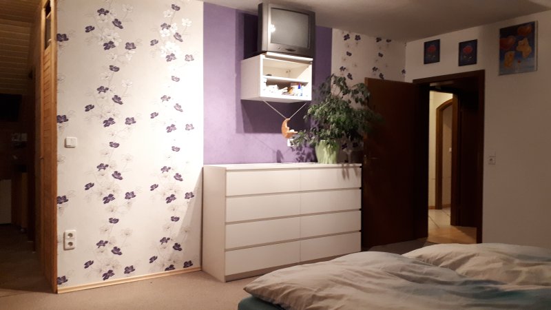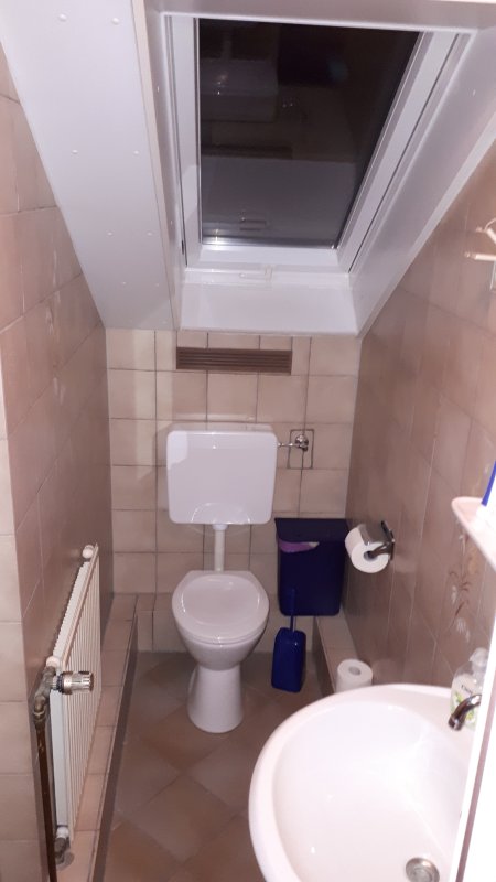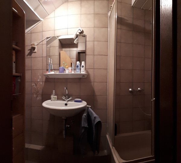 Die Wohnung befindet sich im Dach eines 2stöckigen Mehrfamilienhauses in einer ruhigen Wohnsiedlung (Sackgasse), füssläufig zum Toeppersee und guter Verkehrsinfrastrucktur. Sie wurde aus zwei Wohneinheiten zusammengelegt und hat drei unterschiedlich große Zimmer, eine Küche, einen Flur, ein kleines Duschbad mit Durchlauferhitzer und ein Wannenduschbad mit einer Gas-Kombitherme.