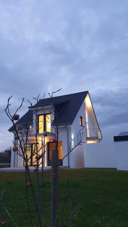 Einzelgarage (auf Wunsch stattdessen auch Doppelgarage) direkt am Haus mit massiver 9qm großen Gartenhütte. Südbalkon.