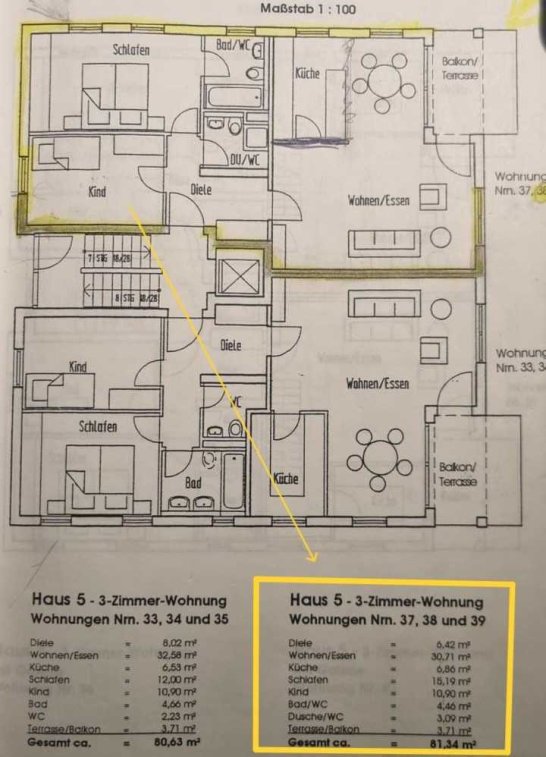 3 Zimmer (Wohnzimmer, Schlafzimmer, Kinder-/Arbeitszimmer)