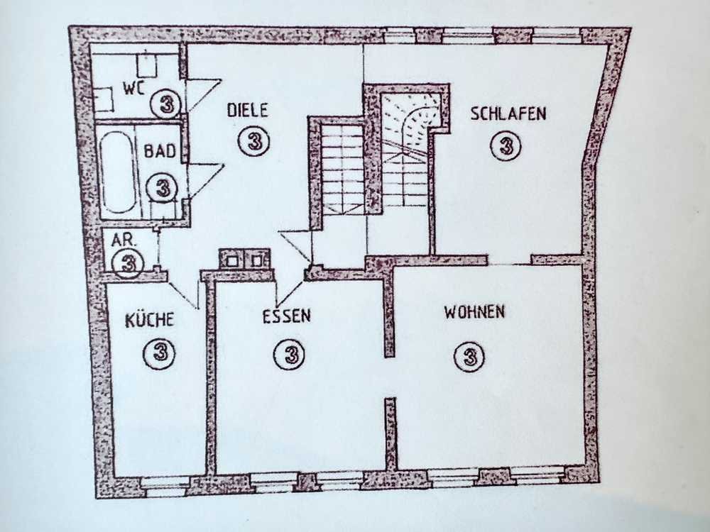 Im ersten Obergeschoss befindet sich diese charmante Wohnung, die durch ihren historischen Charakter und liebevoll erhaltene bauliche Details besticht. Das Gebäude stammt aus dem 15. Jahrhundert und steht unter Denkmalschutz, was ihm eine besondere Atmosphäre verleiht.