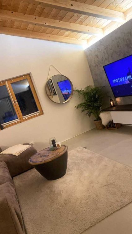 Eine moderne und hochwertig ausgestattete helle Etagenwohnung im 1. Stock mit Blick auf den Seerosenteich oder vom Westbalkon ins Grüne über einen üppig gepflanzten Garten... eine offene Bauweise mit Sichtdachstuhl und einem zentralen Schwedenofen mit Sichtfenster, einer U-Küche mit Altholz-Theke und einer freien Galerie mit transluszentem Raumteiler und Dachfenster - das alles wartet auf dich bzw. euch...
