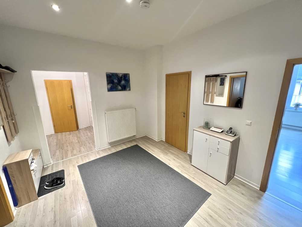 Diese helle und ruhige 3,5-Zimmer Wohnung mit ca. 90 m² Wohnfläche befindet sich im 1. Obergeschoss eines gepflegten Mehrfamilienhauses in Zeulenroda-Triebes. Die Wohnung verfügt über eine gehobene Innenausstattung und einen Parkplatz, der im Mietpreis enthalten ist. Die Wohnung wird vollmöbliert angeboten und wäre sofort bewohnbar. Neben einer umfassend neuwertigen und großen Einbauküche beinhaltet die Wohnung Möbel wie Couch, Bett, diverse Schränke, Garderobe und vieles mehr, welche für 3000 Euro zu übernehmen sind (verhandelbar). Die Wohnung wird ab dem 1. März 2026 verfügbar sein. Haustiere sind nach Absprache erlaubt. Das Haus hat insgesamt 2 Etagen und einen Keller.