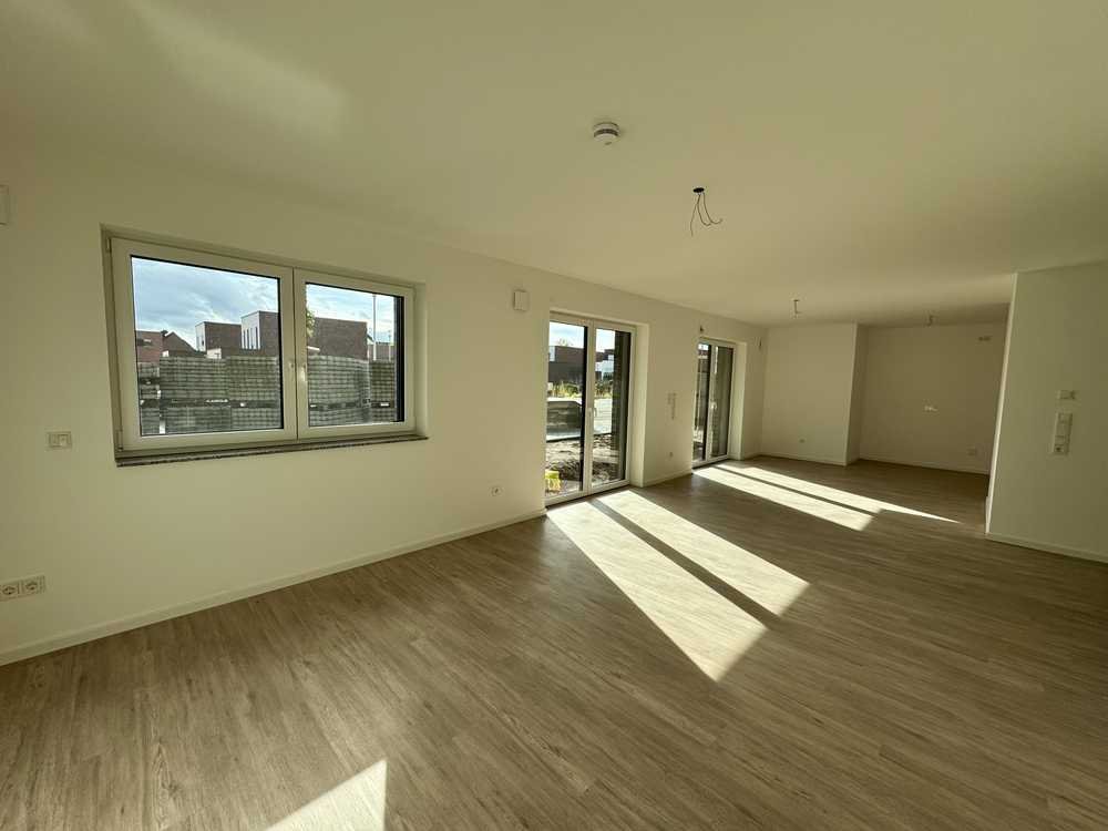 Die helle und großzügig geschnittene 3-Zimmer-Wohnung liegt im Erdgeschoss eines Mehrfamilienhauses mit insgesamt 4 Etagen. In die Wohnung gelangen Sie über das hochwertig gestaltete Treppenhaus. Über den geräumigen Flur gelangen Sie in den Wohn- und Essbereich mit offener Küche. Vom Wohnbereich gelangen Sie auf die große Terrasse mit kleiner Rasenfläche. Die zahlreichen Fenster fluten die Wohnung mit ausreichend Tageslicht. Der helle PVC-Designboden kann durch die integrierte Fußbodenheizung angenehm erwärmt werden. Neben der Wohnküche befindet sich das erste Schlafzimmer. Die Dusche des Badezimmers ist bodengleich gefliest. Die Waschmaschine kann auf einer separierten Fläche im Hauseigenen Waschkeller angeschlossen werden. Die Wohnung verfügt darüber hinaus auch über ein zweites Schlaf-, bzw. Arbeitszimmer.