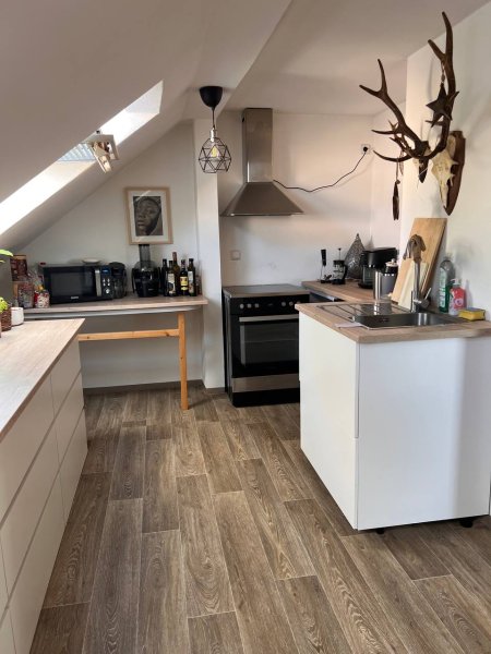 Die Mansardenwohnung liegt in ruhiger Lage. Sehr angenehmes Wohngefühl durch aufgearbeitet Dielen. Viel Nebengelass, Abstellkammer, Boden, Keller, Garage. Gartennutzung möglich