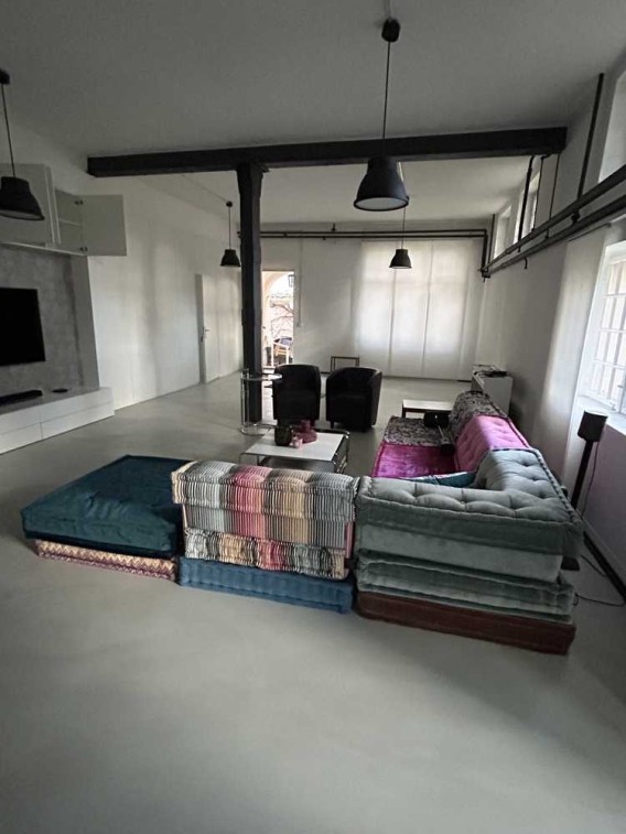 Stilvolles Loft mit ca. 100 m² Wohnfläche im Erdgeschoss eines historischen, denkmalgeschützten Jugendstil Gebäudes in Esslingen am Neckar. Die Wohnung hat eine ganz besondere und großzügige Atmosphäre, eine gehobene Innenausstattung und ist mit 2 Zimmern und 1 Badezimmer ideal für 1 - 2 Personen. Der Eingang erfolgt unabhängig von den anderen beiden Wohnungen im Haus über einen seitlichen Pavillon. Vom Wohnzimmer und der Küche aus kann der gemeinschaftlich nutzbare Garten betreten werden. Eine Küche wird nach Absprache eingebaut. Raumhöhe 3,40 m, der 10 m lange Einbauschrank mit 3 m Höhe bietet ausreichend Stauraum, Bad mit Tageslicht, heller Epoxidharzboden mit Fußbodenheizung in allen Räumen, hochwertige Beleuchtung und blickdichtes Washi-Vorhangsystem. Wir vermieten auf Wunsch gerne auch (teil)möbliert. Haustiere müssen abgesprochen werden.