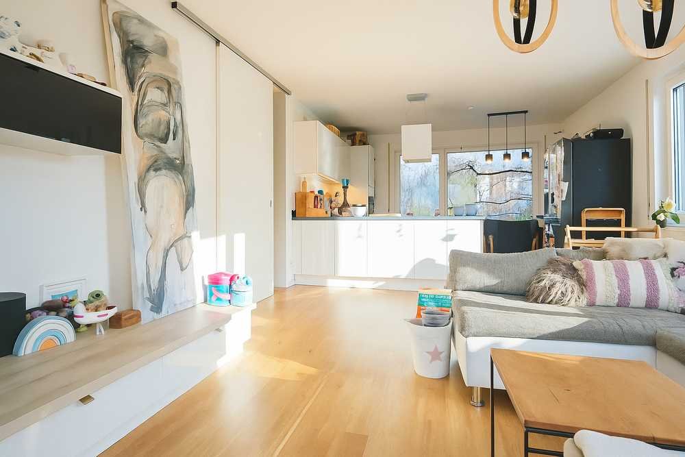 Der großzügige Wohnbereich, zwei komfortable Schlafzimmer, ein stilvoll gestaltetes Badezimmer sowie ein separates Gäste-WC bieten ein angenehmes Wohnambiente. Für zusätzlichen Komfort sorgt die Fußbodenheizung, die über Fernwärme betrieben wird. Ein besonderes Highlight bilden die zwei Terrassen, die ideal zum Entspannen oder für gesellige Stunden im Freien geeignet sind.