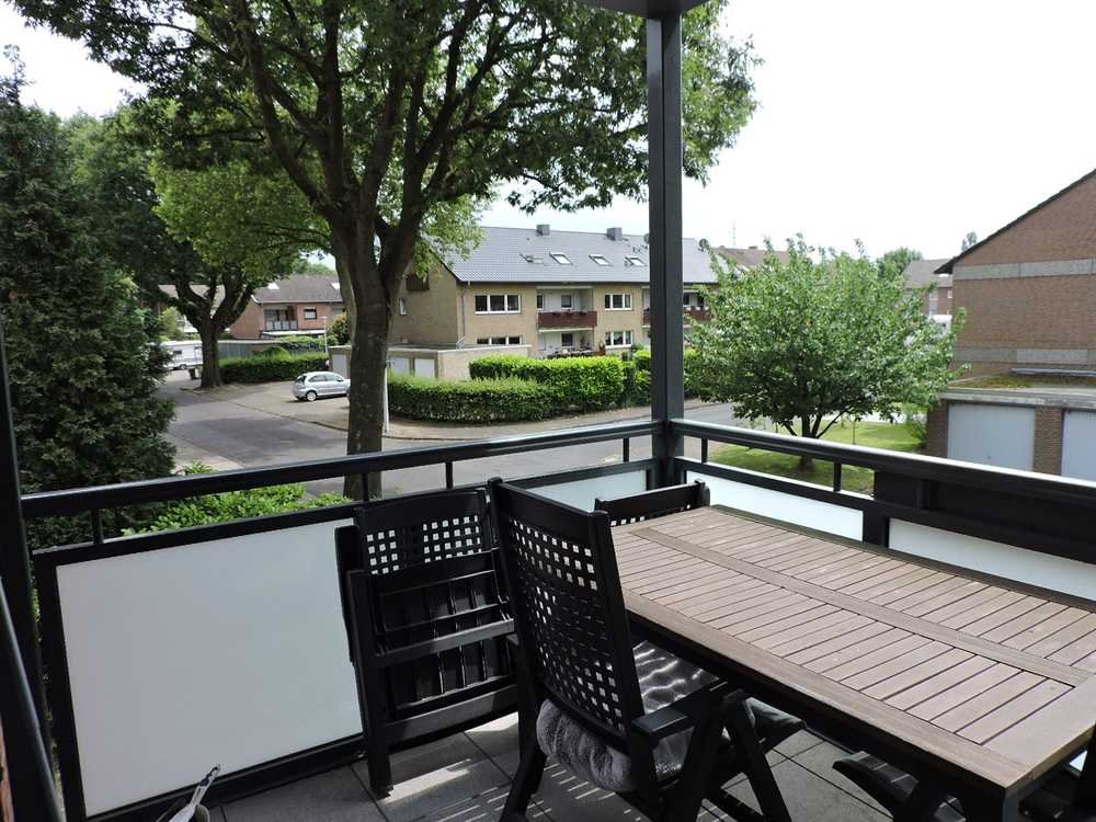 Zum Entspannen lädt der Balkon an der Vorderseite des Gebäudes ein, welcher über das Wohn-Essezimmer begehbar ist. Im Sommer bieten die Bäume vor dem Haus Schatten und eine schöne Atmosphäre