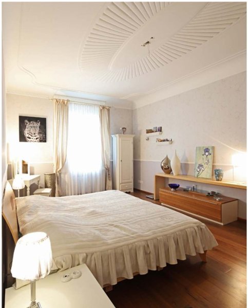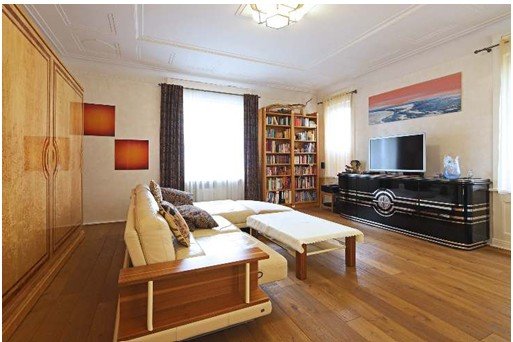 Zimmer 1: 35,52 m² (Wohnungsanteil 53 m²): Stucco Veneziano, Eichenparkett gebürstet, 3 cm massive , Stuckdecke;