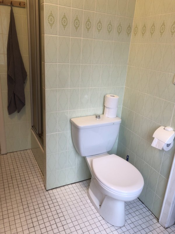 Der Waschmaschinenraum befindet sich in einem Nebengebäude gegenüber der Wohnung.