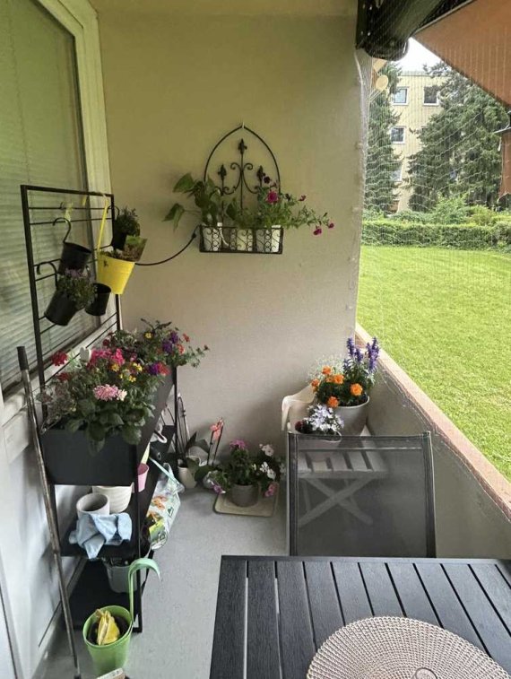 Die Wohnung bietet ein Schlafzimmer mit Parkett, moderne Fliesen in allen übrigen Räumen, Fußbodenheizung, große Fenster, ein helles Bad mit Dusche sowie ein separates Gäste-WC. Der 6 m-Balkon mit elektrischer Markise sorgt für zusätzlichen Wohnkomfort.