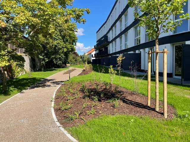 Diese moderne, möbelierte 1-Zimmer Erdgeschosswohnung mit ca. 30,2 m² Wohnfläche befindet sich in einem gepflegten Neubau (2025) Mehrfamilienhaus in Augsburg-Kriegshaber. Die Wohnung verfügt über ein Badezimmer mit Dusche und Handtuchtrockner und eine moderne Möbelierung (Fussbodenheizung, sehr energieeffizientes Baukonzept).Eine kleine Terrasse lädt zum entspannen ein. Die Wohnung ist barrierefrei zugänglich und ein Aufzug erleichtert den Zugang zum Keller, Waschraum und TG. Die Einbauküche ist bereits vorhanden und die Haustierhaltung ist nach Absprache möglich. Die Wohnung ist ab sofort verfügbar.