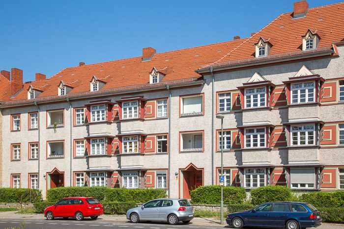 Das Gebäude ist in einem gepflegten Zustand und steht unter Denkmalschutz. Das Viertel ist durch Siedlungsbauten der 1920er- und 1930er- Jahre geprägt. Die aufgelockerte Bebauung mit zahlreichen Grünflächen und liebevoll gestalteten Innenhöfen vermitteln eine hohe Aufenthalts- und Wohnqualität.