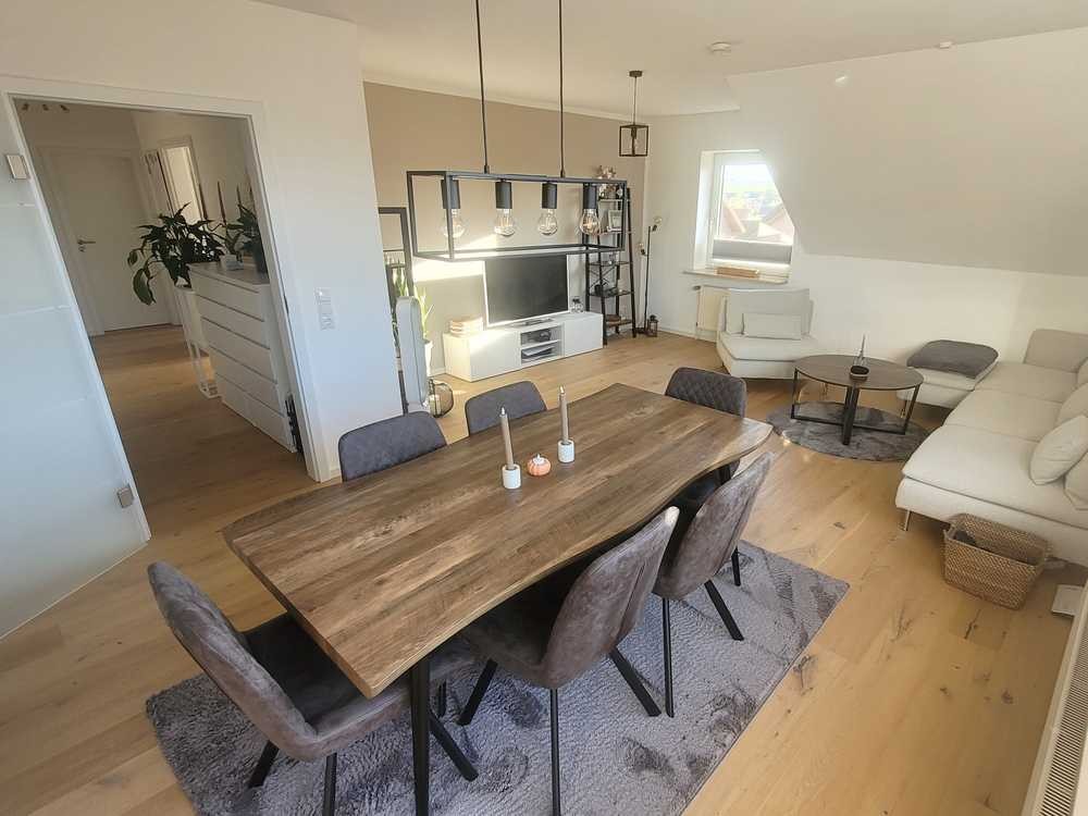 Die Wohnung ist 90m² groß (wg. Dachschrägen), die Grundfläche beträgt ca. 100m². Neben dem großzügigen Wohn/Essbereich verfügt die Wohnung über drei weitere Zimmer, die z.B. als Schlaf-, Arbeits- oder Kinderzimmer genutzt werden können. Neben dem Hauptbad mit Duschkabine und Badewanne verfügt die Wohnung über ein zusätzliches Gäste-WC. Der Hausflur vor der Wohnung kann als Garderobe und Stellfläche genutzt werden.