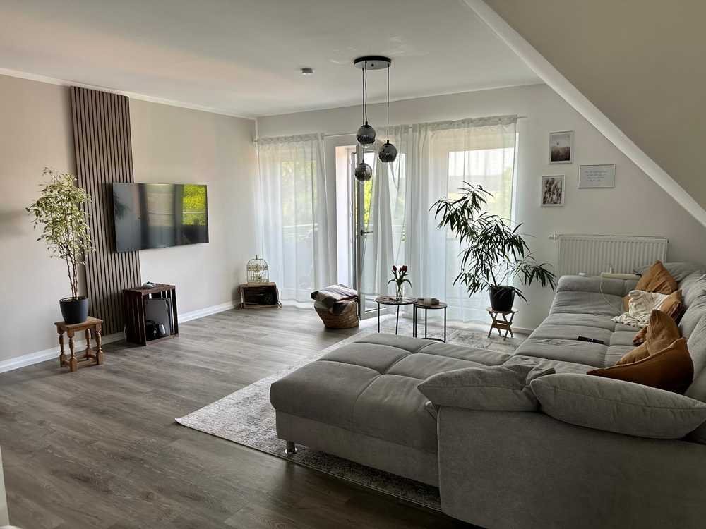 Diese Dachgeschosswohnung/Loft besticht durch Ihre wunderschöne Lage und Ihrer offenen Bauweise. Küche, Essbereich und Wohnzimmer ist ein großer lichtdurchfluteter Raum mit herrlichem Blick in die Natur. Zu der Wohnung gehört ein Schlafzimmer mit bodentiefen Fenstern, direktem Zugang zum barrierefreiem Bad und einem separaten Gäste-WC. Zusätzlicher Stauraum steht im Dachboden zur Verfügung. Der Balkon lädt zum Entspannen und Sonne tanken ein. Eine neue Einbauküche mit Kochinsel kann abgekauft oder gemietet werden. Zusätzlich zum Carport steht noch ein zusätzlicher Stellplatz für ein zweites Auto zur Verfügung. Ein Abteil im Kellerraum mit Anschluss für Ihre Waschmaschine ist ebenfalls vorhanden.