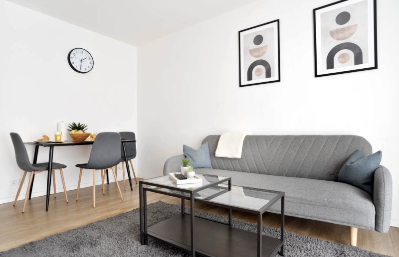 Helles, modern eingerichtetes Studio mit Doppelbett, voll ausgestatteter Küche und gemütlichem Wohnbereich. Zentral gelegen, ideal für Singles oder Paare, die kurze Wege zu Restaurants, Shops & öffentlichen Verkehrsmitteln suchen.