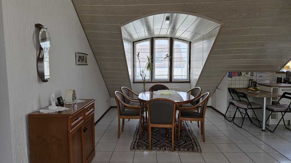 Willkommen in dieser exklusivenDachgeschß-Wohnung im 3. Obergeschoss, mit ca. 92 m² (ohne Schräge 120m²) Wohnfläche und 3,5 Zimmern bietet sie ein großzügiges Raumangebot. Ein besonderes Highlight ist der Balkon und 4 Meter hohe Fenster im Wohnzimmer, der zum Entspannen einlädt. Die Wohnung verfügt über ein Badezimmer sowie ein separates Gäste-WC. Die hochwertige Ausstattung lässt keine Wünsche offen und die Einbauküche ist bereits vorhanden. Ein Keller bietet zusätzlichen Stauraum. Die Verfügbarkeit ist ab dem 1.2.2026 gegeben. Haustiere sind nach Absprache erlaubt. Ein großer Garage-Box ist vorhanden.