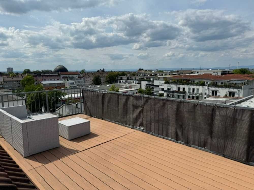 Dieses frisch renovierte Panorama-Dachstudio bietet ein außergewöhnliches Wohnerlebnis über den Dächern Darmstadts. Auf ca. 89 m² verbindet die Wohnung eine offene Grundrissgestaltung mit sichtbaren Holzbalken, Echtholzböden und viel Tageslicht durch große Dachflächenfenster. Die neue maßgefertigte Schreinerküche mit hochwertigen Siemens-Geräten setzt einen besonderen Akzent. Absolutes Highlight ist die ca. 35 m² große Dachterrasse mit fast 360° Rundumblick über Darmstadt, Frankfurt und den Taunus – ein Panorama, das man in dieser Lage selten findet.