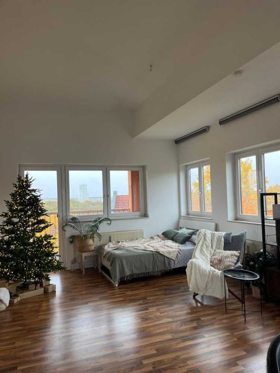 Die lichtdurchflutete 55 m² Penthouse Wohnung befindet sich in Nürnberg-St. Jobst. Die hohen Decken und die vielen Fenster