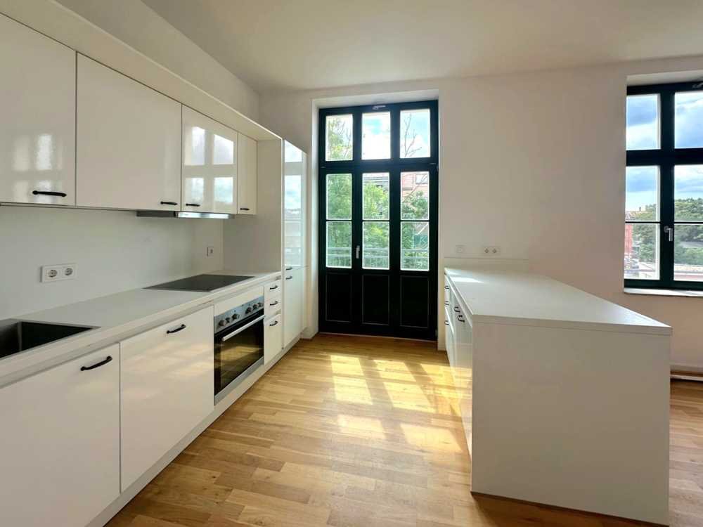 Die moderne Einbauküche ist gut ausgestattet und bietet alles, was man zum Kochen braucht. Auch die anderen Zimmer, welche vom Flur erreichbar sind, sind durch ihre großen Fenster sehr hell und vielseitig nutzbar – ob als Schlaf-, Arbeits-, Gäste- oder Kinderzimmer.