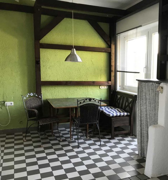 Im FLUR befindet sich ein praktischer großer Einbauschrank mit Garderobe und weiterem Stauraum. Neben den drei hellen SCHLAFZIMMERN, alle mit großen Fenstern, lädt die KÜCHE ebenso ein, sich darin aufzuhalten. Kühlschrank (Respecta Retrolook), Herd, Ofen, Spülmaschine, Spüle sowie Stauraum (u.a. Einbauschränke) sind vorhanden. Mit der hellen hölzernen Küchenzeile (der beliebten IKEA Värde) und stilvollen dunklen Holzbalken als Akzent strahlt sie Gemütlichkeit aus und sie verfügt über einen BALKON mit Blick ins Grüne und auf heddernheims Nachbardächer.